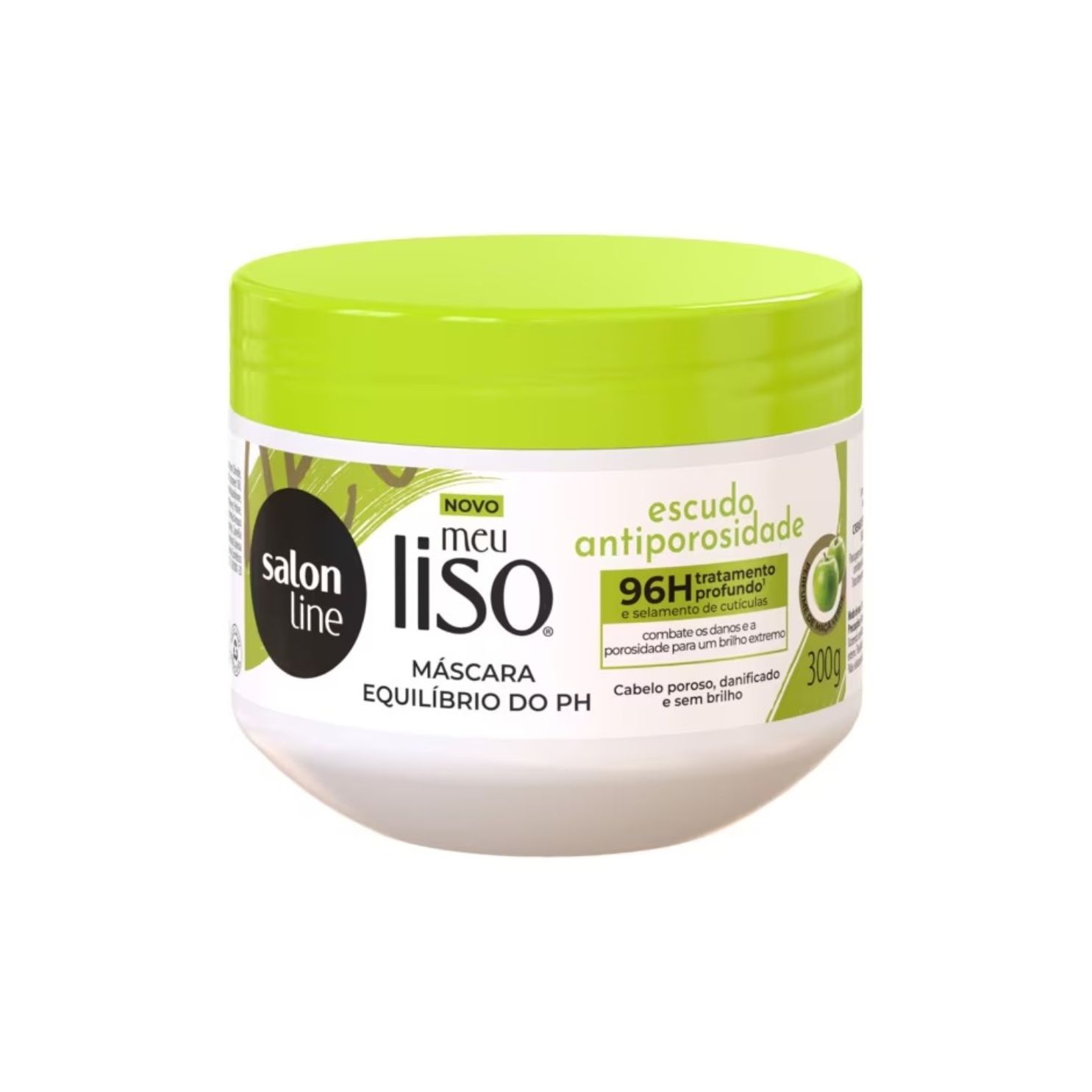 A Máscara Equilíbrio do pH Meu Liso Escudo Antiporosidade trata intensamente os fios, deixando-os macios e sedosos. Além disso, garante 96h de tratamento profundo e selamento das cutículas.